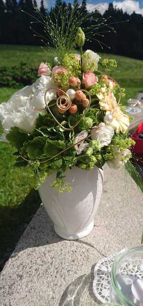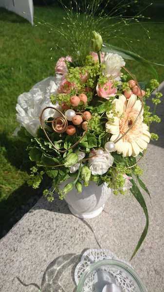 Gerne stellen wir für Sie den Brautstrauß aber auch all die anderen floralen Werkstücke für Sie nach Ihren persönlichen Wünschen zusammen.